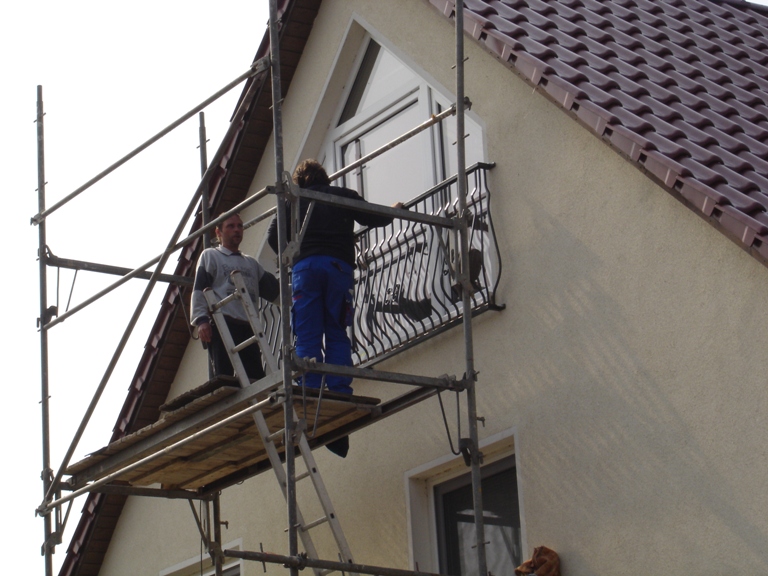 Für die Montage von Balustraden im oberen Bereich, werden gegebenenfalls entsprechende Rüstungselemente gestellt.