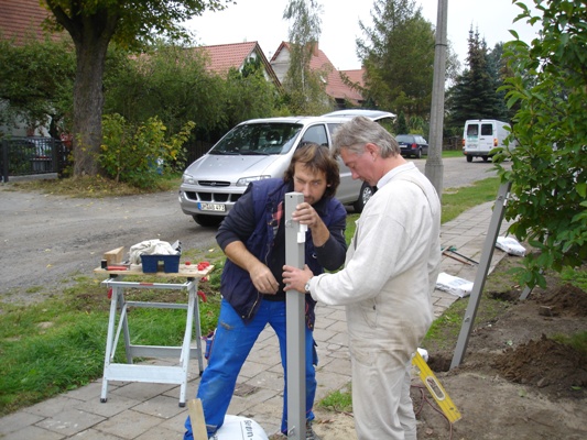 mit der Montage vor Ort hat nun der letzte Schritt begonnen in der Gesamtdurchführung des Projektes. Der Königsweg ist, so sagt man, die vorherige Errichtung eines Klinker - Mauerwerks, in welchem die neue Anlagespäter eingebaut wird.Natürlich gibt es aber auch die einfacheren Varianten im Zaunbau, die auch weniger preisintensiv sind. Es ist immer auch eine Frage, was zum jeweiligen Grundstück passend ist, dem Stil des jeweiligen Anwesens in Form und Farbe entspricht und was den Geschmack der jeweiligen Eigentümer trifft. Dies versuchen wir in unseren Beratungen immer mit einfließen zu lassen.